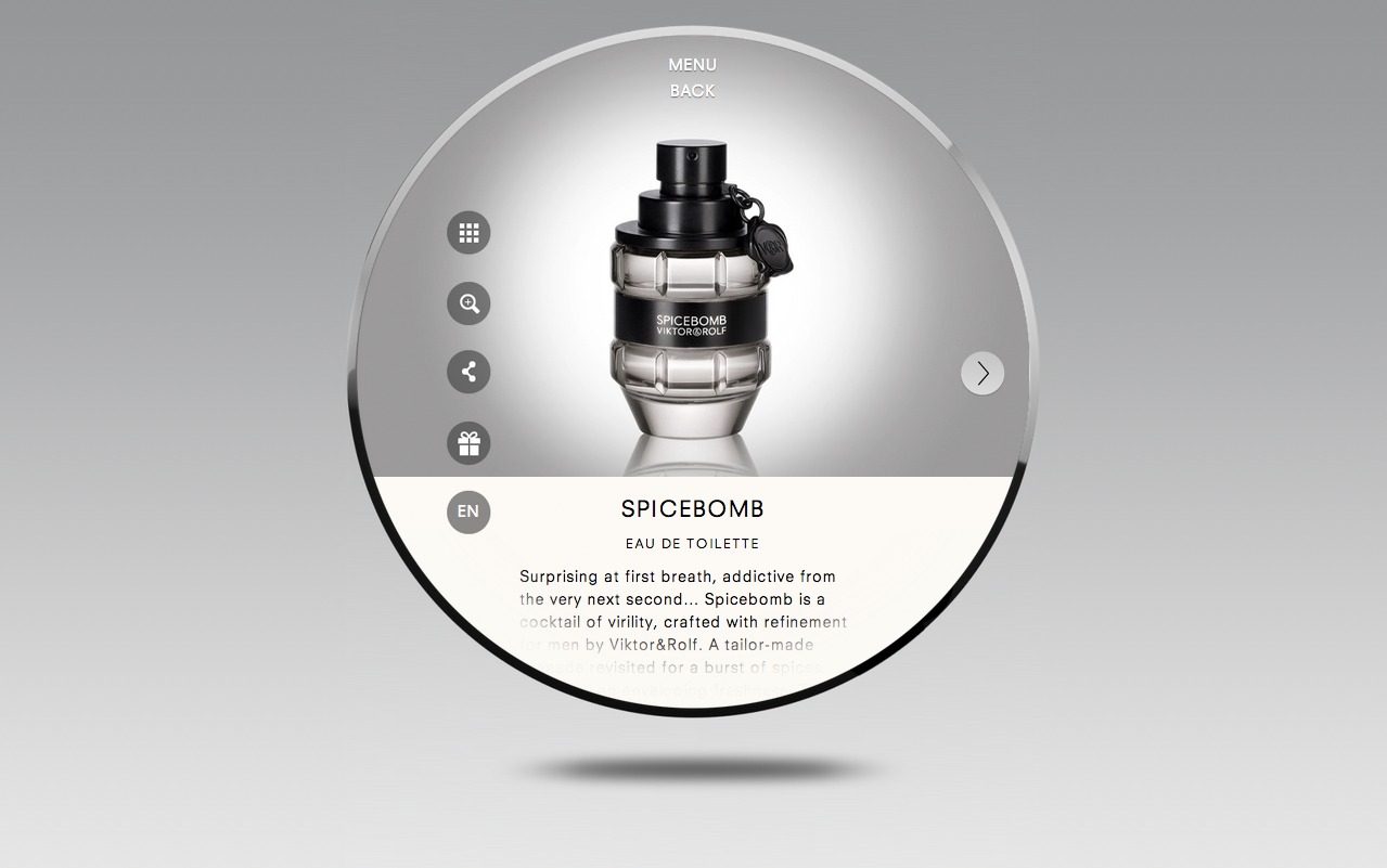All the content is captured within a circle. A real design challenge. The only way to 'get out of the circle' is to view collection pieces fullscreen. The website is not only an unconventional shape, it also comprises twenty years of Viktor & Rolf in collections, portraits and heritage, as well as their collection of fragrances.